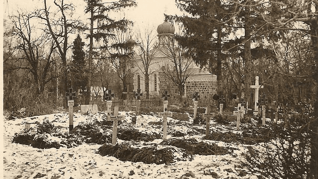 Русское кладбище размещалось на месте универмага и фонтанов. Католическое – на месте Центрального парка. На Русском кладбище хоронили греко-католиков, униатов и православных. Парк, который располагается у универмага, где расположена спроектированная Артыновым церковь, и является Русским кладбищем.